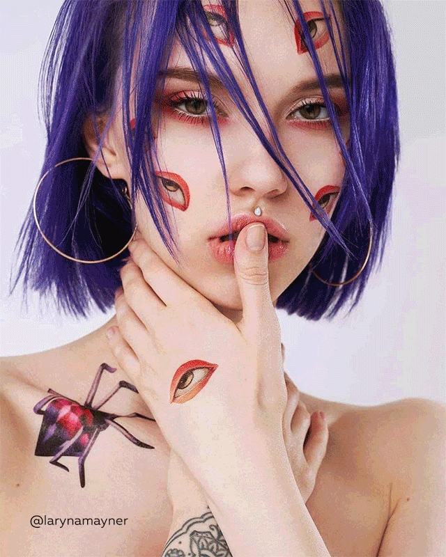 Tattoos may be applied over the foundation, they are perfectly combined with each other, and they're easy to wash off with waterproof makeup remover or with oil. Try it, it's a great idea not only for a holiday, but also for a cool photo shoot.