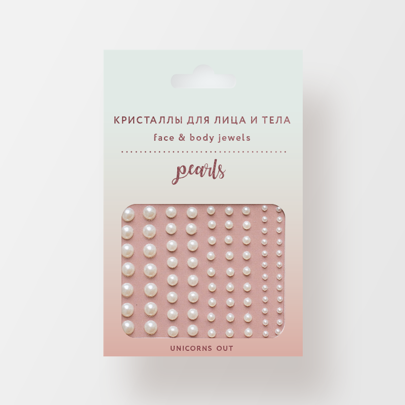 Face jewels which will look beautiful on the face, hair or body. The pearls may be applied over makeup. The package contains 81 pearls of different diameters.
