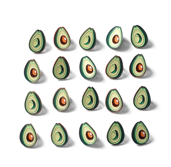 A pair of two pins — avocado halves that you can wear together or give a half to your soulmate.